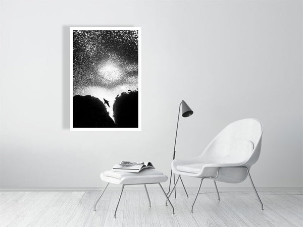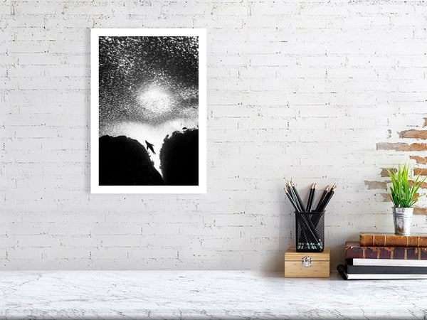 México, Baja California Sur, Los Islotes. A sea lion swimming among a school of sardines.